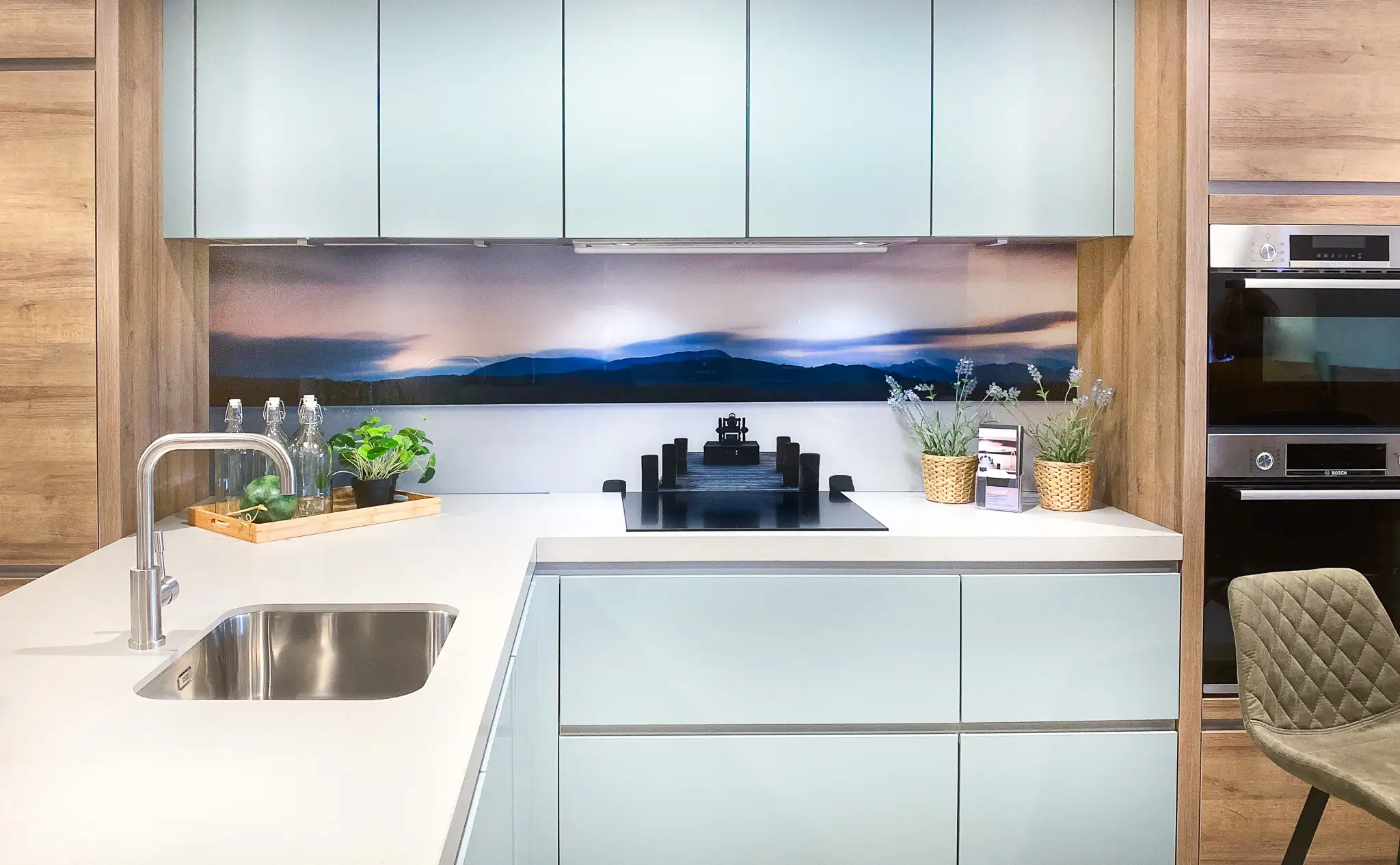 Een keukenachterwand is niet alleen een esthetische toevoeging, maar ook een functioneel element. Onze achterwanden beschermen je keuken muur tegen vetspatten en vocht, terwijl ze door hun naadloze afwerking zeer hygiënisch en makkelijk schoon te houden zijn.